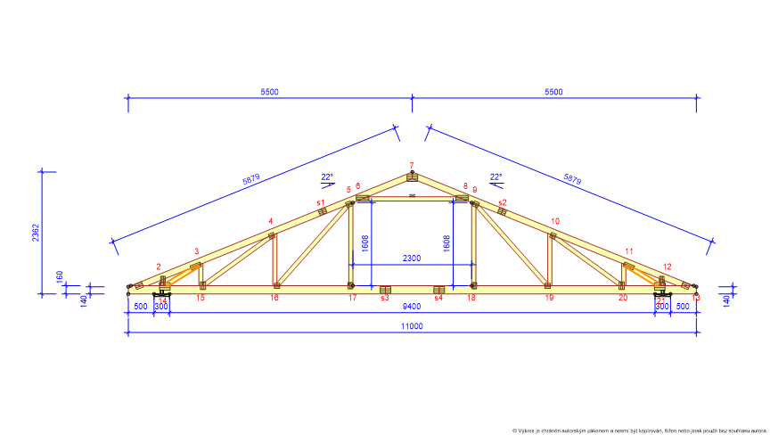 * Vazník je dimenzován maximálně na sněhovou oblast III a větrovou oblast III, pro vyšší oblasti je nutno staticky přepočítat rozteč vazníků.
